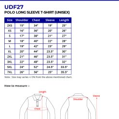 The UDF27 Polo Long Sleeve T-Shirt is crafted from 100% performance Dri-Fit microfiber polyester with an eyelet weave for maximum breathability and sweat-wicking performance. Designed for active wear, corporate uniforms, and team apparel, it comes in 22 colors and a wide unisex size range from 2XS to 7XL.